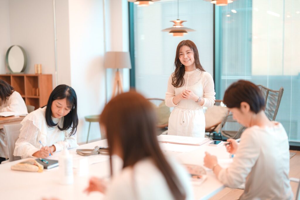 主にお教室運営や講師業をされている女性が多く、ベビー系・料理教室・お菓子教室・パン教室・麹教室・親子向け教室・フラワー教室・ハンドメイド講師・ベビーフォトグラファーなど、幅広いジャンルの方が参加しています。また、開業サポートやコンサルを目指す女性も受講されています。
